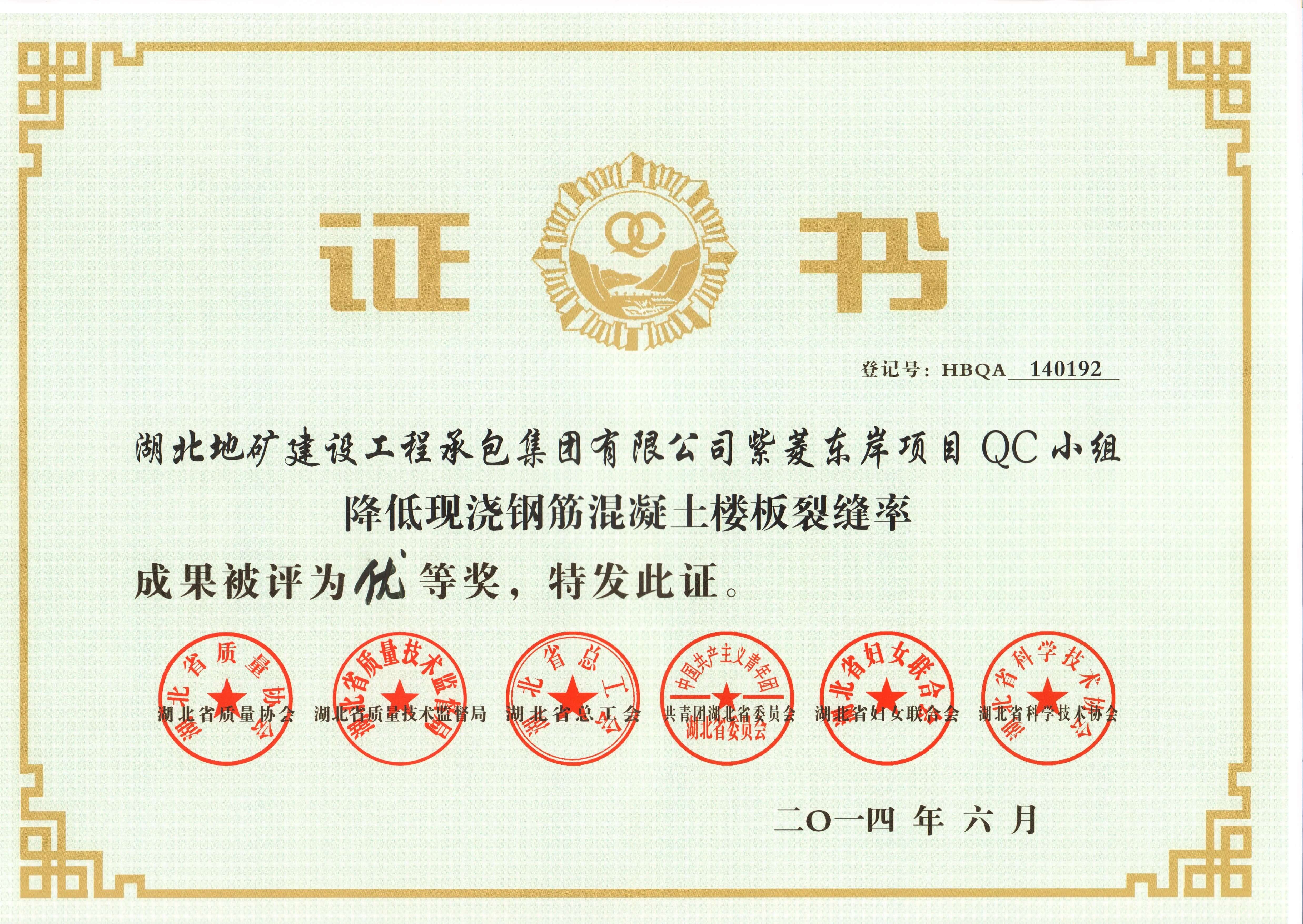承包公司紫菱東岸QC小組優(yōu)等獎(jiǎng)