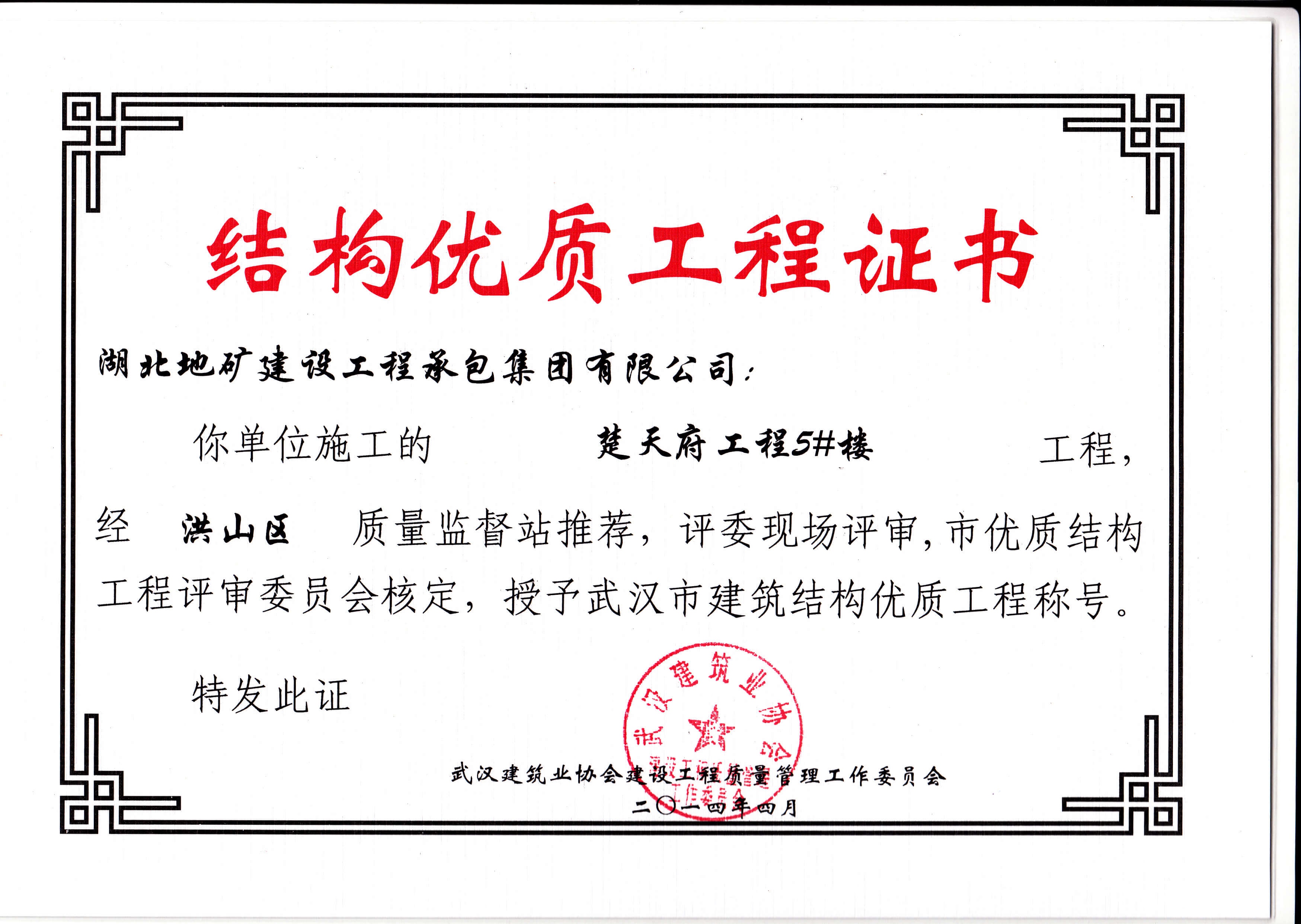 承包公司楚天府5#樓武漢市建筑結(jié)構(gòu)優(yōu)質(zhì)工程