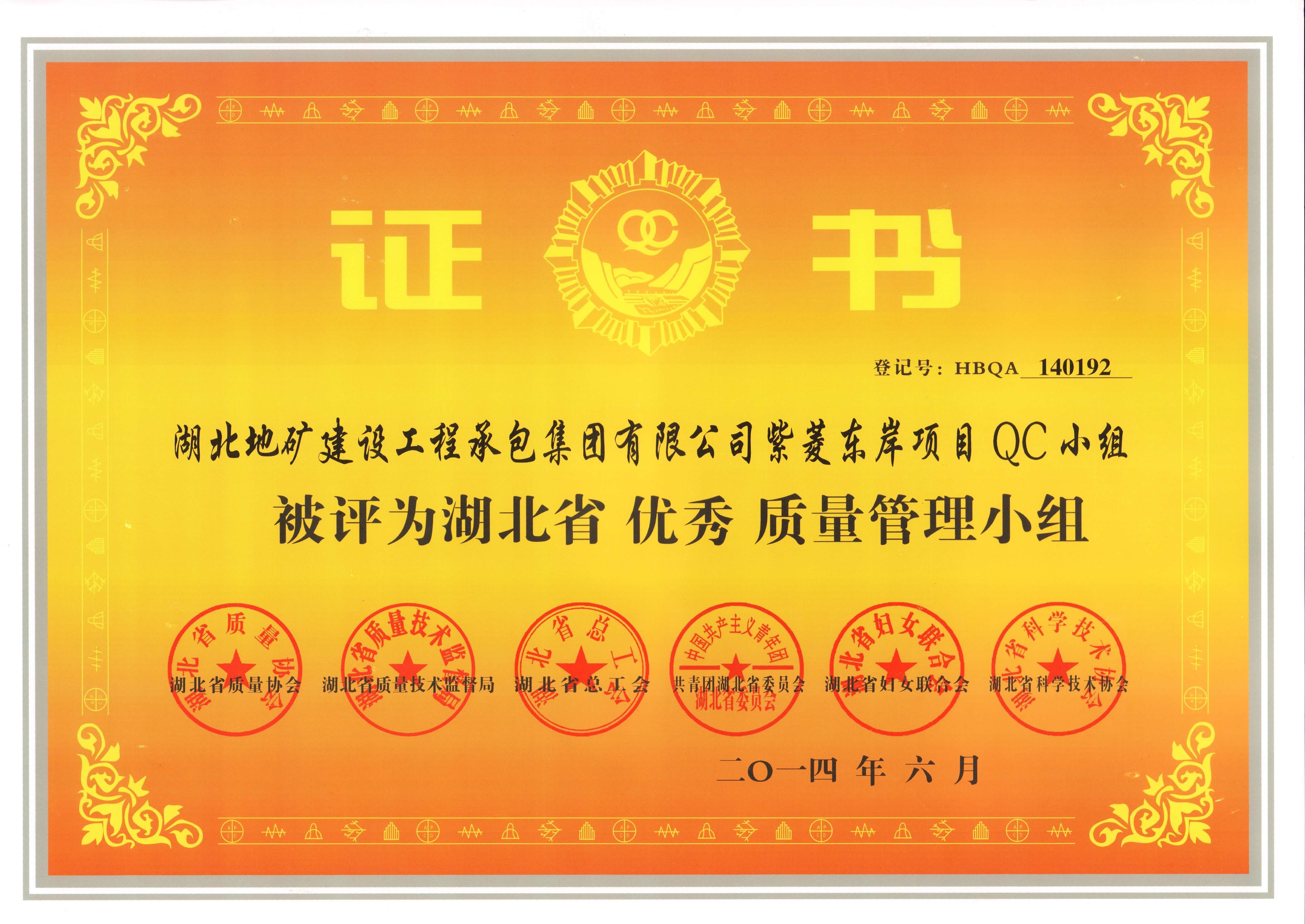 承包公司紫菱東岸QC小組優(yōu)秀質(zhì)量管理小組