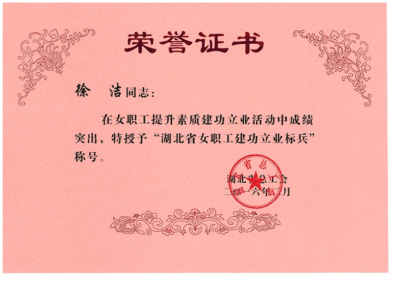 徐潔獲湖北省女職工建功立業(yè)標(biāo)兵