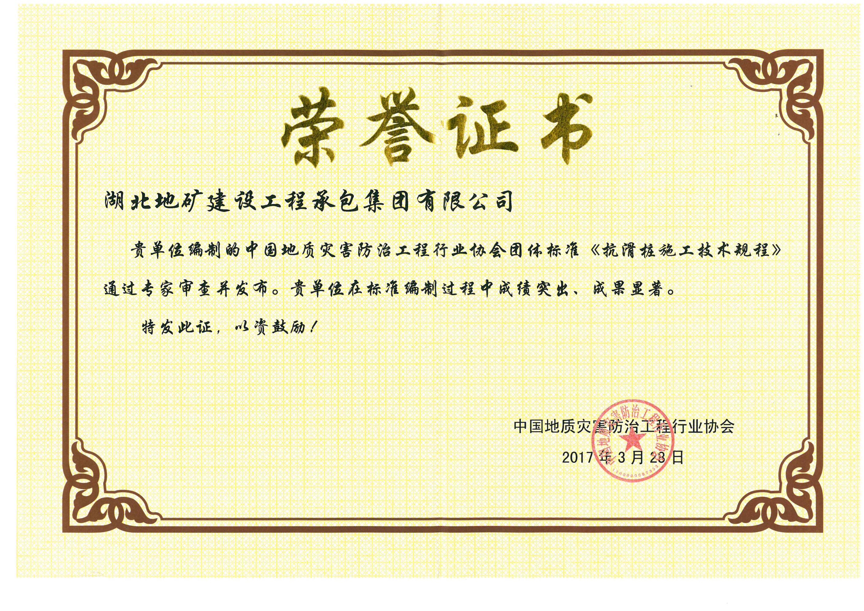 中國地質(zhì)災(zāi)害防治工程行業(yè)協(xié)會(huì)編制《抗滑樁施工技術(shù)規(guī)程》——承包公司