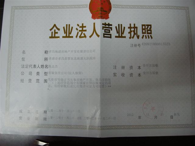 房地產(chǎn)公司完成孝昌公司注冊登記工作