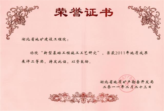 全局34項(xiàng)地質(zhì)成果參加了地質(zhì)成果展評(píng), 29項(xiàng)成果參加評(píng)選,(包括工程院選送的“湖北省工程建設(shè)工法的開(kāi)發(fā)”成果在內(nèi)的5項(xiàng)成果因近兩年在省局或省廳獲過(guò)獎(jiǎng)而不參加本次評(píng)獎(jiǎng)),共評(píng)出壹等獎(jiǎng)2項(xiàng),貳等獎(jiǎng)4項(xiàng),叁等獎(jiǎng)8項(xiàng)。由工程院選送的“新型基礎(chǔ)工程施工工藝研究”成果榮獲貳等獎(jiǎng),“深基坑新型支護(hù)結(jié)構(gòu)及深井降水的計(jì)算與分析” 成果榮獲叁等獎(jiǎng)。