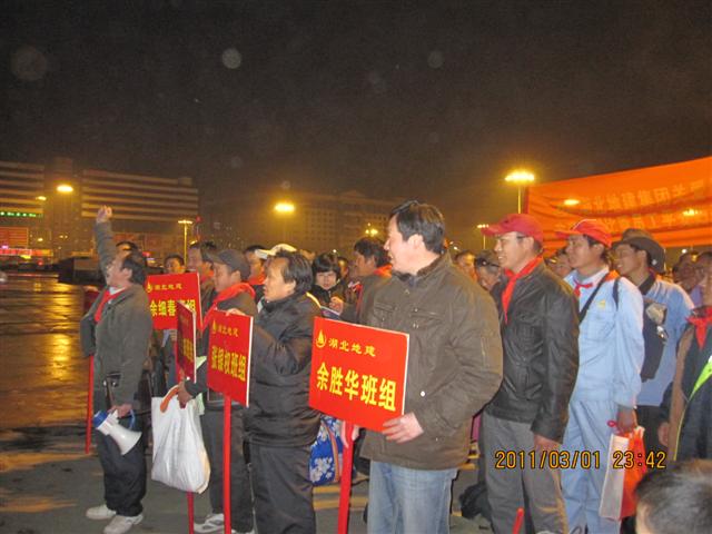 3月1日23時20分,第二批湖北地建集團駐利比亞項目工程人員共106名,乘坐北京-武漢的D121次列車安全抵達武漢,地建集團總經(jīng)理程立文、黨委書記吳國才等到車站迎接。按撤離預(yù)案,撤離回國的人員的先后順序為女同志、勞務(wù)人員、管理人員,項目部管理骨干和黨員最后撤離,這次撤離的主要是勞務(wù)人員。