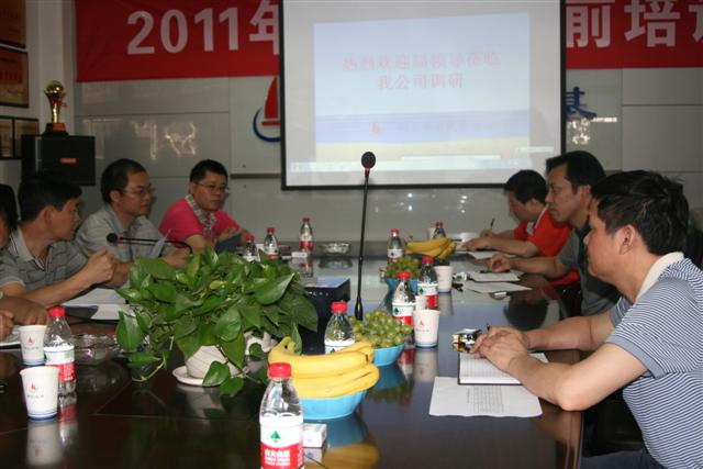 2011年8月4日上午,省地礦局副局長(zhǎng)曾環(huán)宇、工程地質(zhì)處處長(zhǎng)沈順照一行到武基公司調(diào)研。調(diào)研組認(rèn)真聽(tīng)取了武基公司近幾年經(jīng)營(yíng)發(fā)展情況及2011年1 -7月工程院下達(dá)工作目標(biāo)完成情況的匯報(bào),詳細(xì)了解了武基公司人員編制和外協(xié)隊(duì)伍情況、管理機(jī)構(gòu)設(shè)置和分工情況、設(shè)備資產(chǎn)現(xiàn)狀和經(jīng)營(yíng)市場(chǎng)細(xì)分情況。