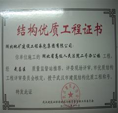 由湖北地礦建設工程承包集團有限公司承建的湖北省高級人民法院二號辦公樓工程被武漢市優(yōu)質結構工程評審委員會授予“武漢市建筑結構優(yōu)質工程”稱號。