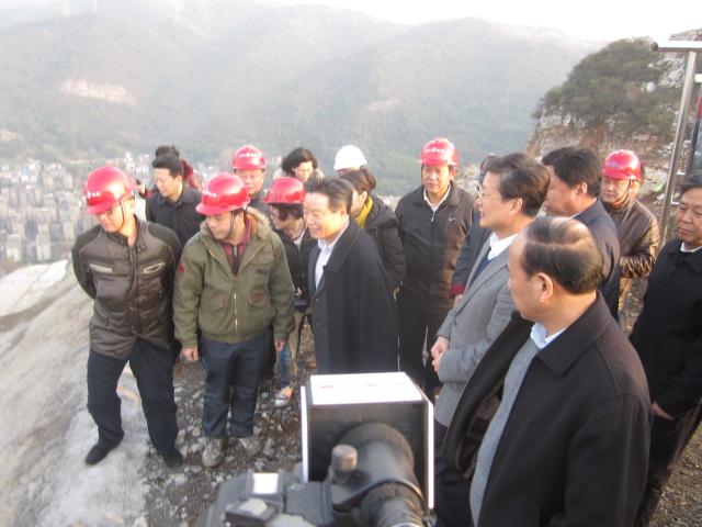 2011年12月8日下午,國土資源部部長、部黨組書記、國家土地總督察徐紹史,國土資源部副部長汪民,湖北省副省長田承忠,省國土資源廳廳長杜云生等部、省領(lǐng)導(dǎo),在黃石市委書記王建鳴、市長揚曉波的陪同下,專程到湖北地建承包公司承接施工、目前已經(jīng)竣工的黃石市板巖山地質(zhì)災(zāi)害治理工程現(xiàn)場考察。黃石分公司經(jīng)理雷貴華現(xiàn)場陪同。