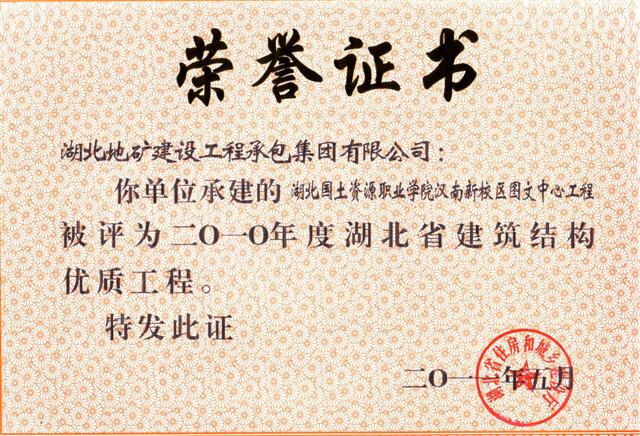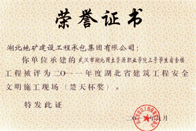 據(jù)悉,“安全文明施工現(xiàn)場(楚天杯)”獎是湖北省建筑行業(yè)安全文明施工的最高榮譽獎項,目的在于鼓勵建筑施工企業(yè)搞好安全文明施工,提高全省建筑施工安全生產(chǎn)水平。該獎項的評定是從建設、施工、監(jiān)理等方面,對項目現(xiàn)場進行全方位考評。 另訊,日前收到湖北省住房和城鄉(xiāng)建設廳文件《關于公布2010-2011年度第一批湖北省建筑結構優(yōu)質(zhì)工程名單的通知》(鄂建文〔2011〕61號),地建承包公司承建的湖北國土資源職業(yè)學院漢南新校區(qū)圖文中心工程和鄂東北地質(zhì)大隊孝感基地經(jīng)濟適用房工程名列其中。