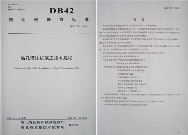 近日,我院參與編寫的湖北省地方標(biāo)準(zhǔn)《基坑降水工程技術(shù)規(guī)程》(DB42/T830-2012)和《鉆孔灌注樁施工技術(shù)規(guī)程》(DB42/T831-2012)經(jīng)湖北省住房和城鄉(xiāng)建設(shè)廳及湖北省質(zhì)量技術(shù)監(jiān)督局審查通過并批準(zhǔn)頒布實(shí)施。這二項(xiàng)湖北省地方技術(shù)標(biāo)準(zhǔn)正式頒布實(shí)施標(biāo)志著工程院在編寫技術(shù)標(biāo)準(zhǔn)方面有了重大的突破,可增強(qiáng)工程院在該技術(shù)領(lǐng)域的話語權(quán),提高社會知名度。