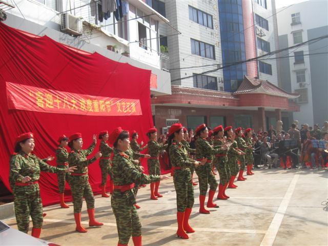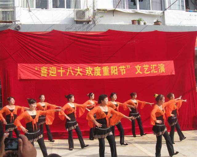 10月23日上午,黃石基地管理處在楠竹林小區(qū)門前廣場舉行“喜迎十八大 歡度重陽節(jié)”文藝匯演,基地領(lǐng)導(dǎo)、馬鞍山社區(qū)領(lǐng)導(dǎo)出席并觀看了演出。 該活動由基地楠竹林中老年文體協(xié)會牽頭,基地領(lǐng)導(dǎo)親自參與了活動的籌備和部署工作?;顒蝇F(xiàn)場,離退休職工和小區(qū)居民載歌載舞共同回首激情歲月,歌頌黨和國家,贊美幸福的晚年生活,用獨特的方式慶祝重陽節(jié),向即將召開的黨的十八大獻禮。豐富精彩的節(jié)目吸引了周邊數(shù)百名群眾到場觀看,整個匯演氣氛熱烈,掌聲不斷。 10月23日下午,黃岡基地舉辦重陽節(jié)慶祝活動。基地主任饒水明發(fā)表了節(jié)日賀詞,祝福老同志們健康長壽,并鼓勵他們堅持健康生活方式,繼續(xù)加強政治學(xué)習(xí),關(guān)心支持花園式基地建設(shè),共建美好家園。 慶?;顒蝇F(xiàn)場,活潑喜慶的廣場舞表演、深情婉轉(zhuǎn)的女聲獨唱、熱情澎湃的大合唱、自信投入的二胡獨奏、養(yǎng)生太極拳太極劍表演和現(xiàn)場老同志瀟灑飄逸的書法、繪畫秀令觀眾大飽眼福。趣味競賽環(huán)節(jié),排著長隊擲飛鏢、握力比拼的老同志,摩拳擦掌,躍躍欲試,比賽成績好的贏得觀眾熱烈的掌聲,成績稍差的也得到更多的鼓勵掌聲;顛乒乓球比賽,有幾位女同志居然顛了1400多下,讓一旁數(shù)球的同志都笑彎了腰。 黃岡基地管理處全體干部職工表示,老同志是單位寶貴財富,一定要讓離退休職工老有所學(xué)、老有所養(yǎng)、老有所為、老有所樂,這是他們最大的心愿。