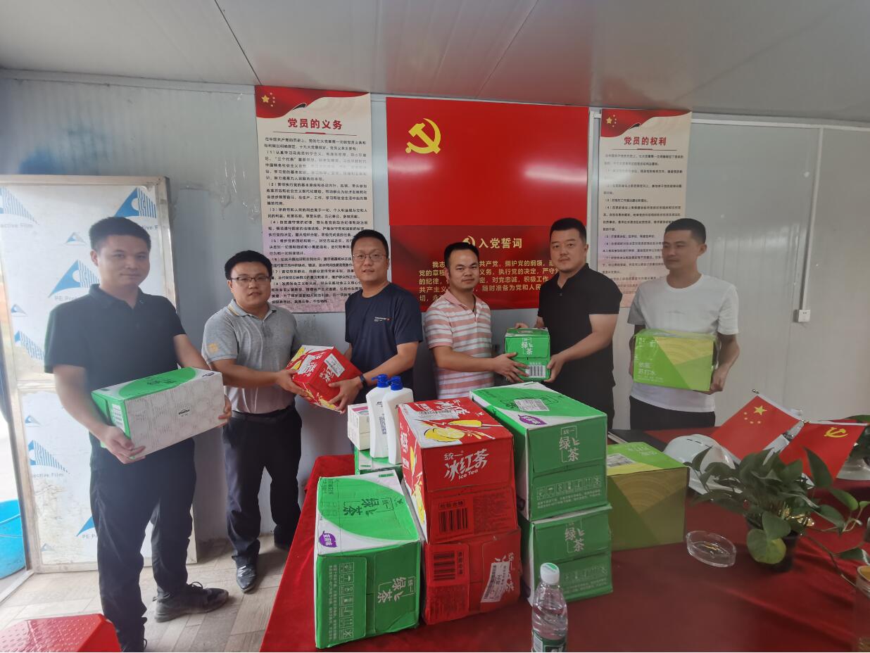 ? ?“力盡不知熱,但惜夏日長(zhǎng)。”盛夏時(shí)節(jié),酷熱難耐,持續(xù)的高溫牽動(dòng)著承包公司黨政領(lǐng)導(dǎo)班子的心,他們時(shí)刻牽掛著工作在施工一線崗位的員工。7月12日起,公司黨總支書(shū)記、總經(jīng)理李彥與班子成員帶隊(duì)到惠州正豪項(xiàng)目、西商項(xiàng)目、咸寧奧園江山賦、孝感奧園天河書(shū)院、國(guó)土資源職業(yè)技術(shù)學(xué)院實(shí)驗(yàn)樓等16個(gè)項(xiàng)目開(kāi)展了為一線員工“送清涼”活動(dòng),發(fā)放防暑降溫茶,在炎炎夏日給默默堅(jiān)守工作崗位的職工送上絲絲涼意,把企業(yè)的關(guān)懷送到職工心中。一份清涼是一份關(guān)愛(ài),雖然夏日酷熱難擋、工作量又持續(xù)攀升,但公司領(lǐng)導(dǎo)親臨一線,把關(guān)心送到每一個(gè)員工的心田?!八颓鍥觥被顒?dòng)用真情和關(guān)愛(ài)為員工撐起一片“綠蔭”,使職工深切感受到公司領(lǐng)導(dǎo)和工會(huì)組織的溫暖,同時(shí)鼓舞了一線員工奮勇拼搏的士氣,表達(dá)了公司對(duì)高溫崗位上職工們的關(guān)心與問(wèn)候,營(yíng)造了關(guān)愛(ài)職工的良好氛圍,推動(dòng)了公司和諧穩(wěn)定的發(fā)展!