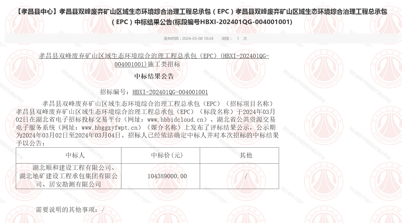 孝昌縣雙峰廢棄礦山區(qū)域生態(tài)環(huán)境綜合治理工程總承包(EPC)項目,實施范圍包括孝昌縣周巷鎮(zhèn)雙峰村、大屋村、龍泉村、安全村、九峰村等5個行政村,國土面積4.99平方公里。主要建設(shè)內(nèi)容包括礦山生態(tài)修復(fù)治理、農(nóng)村生活污水處理、農(nóng)用地修復(fù)治理、淤塞河道生態(tài)修復(fù)及邊坡治理等。我公司負責該項目礦山生態(tài)修復(fù)治理工程實施。