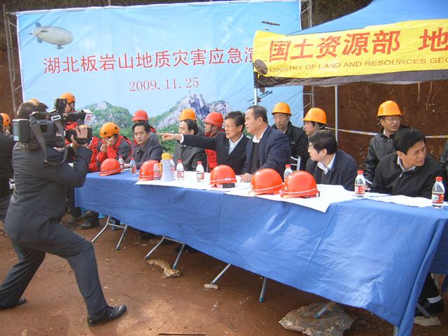 黃石市市委書記王建鳴、國土資源部環(huán)境司司長關(guān)鳳俊、中國地質(zhì)環(huán)境監(jiān)測院副院長田延山、省國土資源廳總工程師徐振坤、田大佑處長、施偉忠副處長、湖北地建集團陳少平總工等各級領(lǐng)導(dǎo)出席了演練觀摩現(xiàn)場。