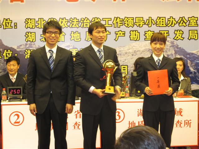 12月9日上午,在省地礦局主辦的湖北省“地礦杯”法律知識(shí)競(jìng)賽的決賽中,湖北地建集團(tuán)代表隊(duì)奮力爭(zhēng)先,一路凱歌,經(jīng)過(guò)激烈的搶答,最終勇奪第一名,隊(duì)員崔紅軍榮獲法律知識(shí)競(jìng)賽標(biāo)兵,同時(shí)地建 集團(tuán)還獲得了此次比賽的組織獎(jiǎng)。由集團(tuán)在漢單位20位職工組成的啦啦隊(duì),著裝整齊,精神抖擻,和他們手中高舉的宣傳牌一起,構(gòu)成了一道亮麗的風(fēng)景線,很好的彰顯了湖北地建的企業(yè)形象和文化特色,受到了在場(chǎng)領(lǐng)導(dǎo)和觀眾的關(guān)注和贊賞。
