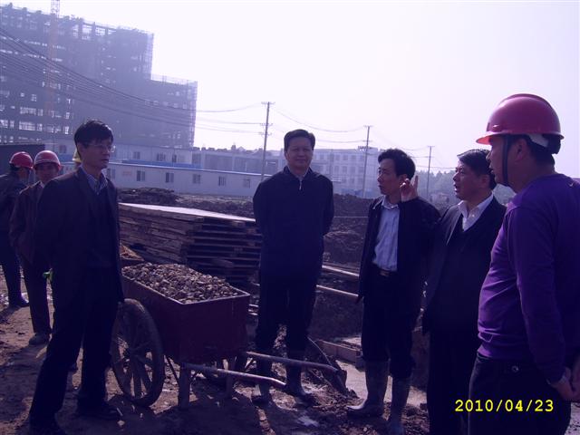 2010年4月23日,漢南區(qū)區(qū)委書記曹裕江、區(qū)發(fā)改委主任黃忠華等一行到承包公司湖北國土資源職業(yè)學院漢南項目調研。曹裕江聽取了項目執(zhí)行經理張煥生同志關于施工進度情況的匯報,實地察看了項目的建設情況,了解了施工過程中需要區(qū)委幫助協(xié)調解決的問題和困難,并就項目建設情況給予了一些具有指導性的意見和建議。