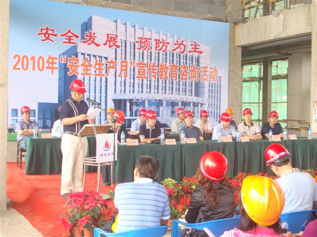 2010年6月13日由省地礦局工程地質處主辦,湖北地建集團承辦的“安全生產(chǎn)月宣傳教育咨詢活動”在湖北國土資源職業(yè)學院漢南新校區(qū)項目隆重舉行,省地礦局副局長曾環(huán)宇、副巡視員葉明瑞、工程地質處處長沈順照、工會主席鐘偉,湖北地建集團董事長兼總經(jīng)理程立文出席了活動。本次活動,通過宣傳黨和國家安全生產(chǎn)的方針政策和法律法規(guī),普及了安全生產(chǎn)基礎性知識,突出了“安全發(fā)展、預防為主”的主題,讓“安全第一”的觀念深入人心,為全局營造了“關愛生命、關注安全”的濃厚氛圍。